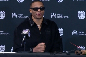 賽后,威少戴著墨鏡參加新聞發(fā)布會,看起來心情很不錯,他貌似還帶著一節(jié)雙節(jié)棍參加發(fā)布會,當記者問這是不是雙節(jié)棍時,威少笑了笑沒有回答,繼續(xù)接受采訪。
