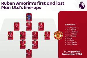 體育資訊01月07日訊 英超官方社媒曬圖,對比了阿莫林執(zhí)教曼聯(lián)首戰(zhàn)和最后一戰(zhàn)的首發(fā),并且發(fā)問:“你注意到什么了?”