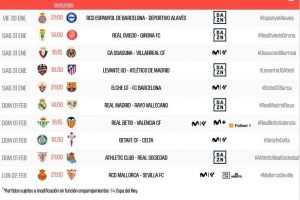 體育資訊1月10日訊 西甲官方公布了第22輪比賽的開(kāi)球時(shí)間,2月1日4點(diǎn)埃爾切vs巴薩,2月1日21點(diǎn)皇馬vs巴列卡諾。