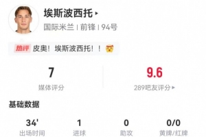 體育資訊1月15日訊 國(guó)米在本輪意甲1-0小勝萊切,埃斯波西托本場(chǎng)數(shù)據(jù)如下: