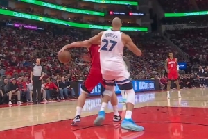 GIF-申京背傳戲耍戈貝爾 球出手還在做動(dòng)作晃人