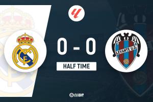 上半場補(bǔ)時2分鐘,皇馬0-0萊萬特。