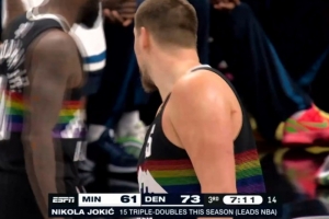(這是約基奇本賽季第9次在三節(jié)結(jié)束前拿到三雙了)