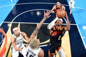 所以雖然雙塔組合夠強,但兩人相對單一的功能,讓對方的內(nèi)線球員能夠更專注于同樣較為單一的工作內(nèi)容,把大部分防守注意力都集中在SGA等人的持球強攻上。